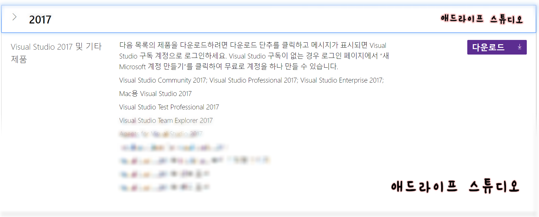 2019 버전이 현재 최신 버진이므로 이전 버전을 받기 위해선 아래 링크를 따라갑니다.