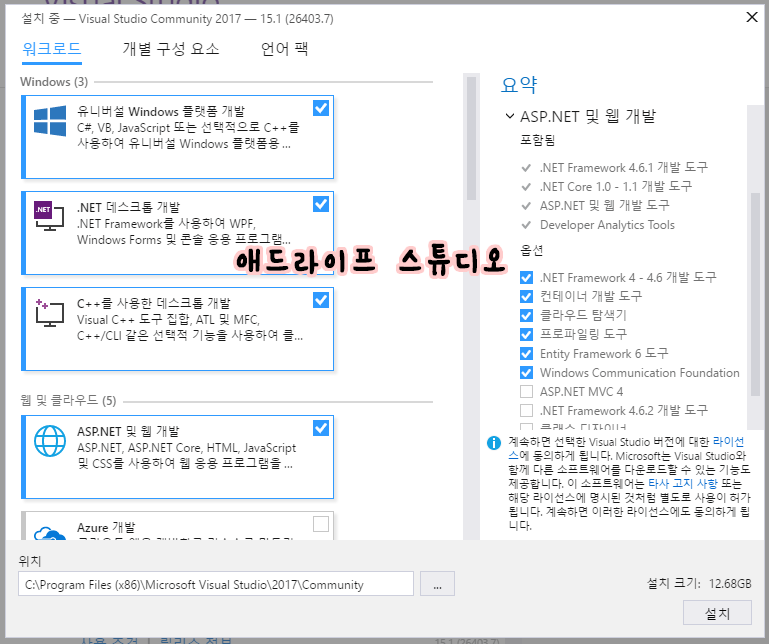 다운로드 다 받고 설치를 시작하면 위와 같은 화면이 보입니다.