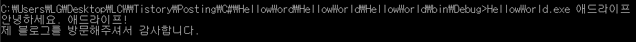WriteLine("안녕하세요. {0}ㅣ!\n제 블로그를 방문해주셔서 감사합니다.",args[0]);