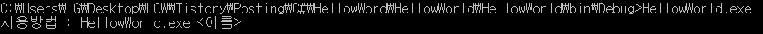 WriteLine("사용방법 : HellowWorld.exe <이름>");