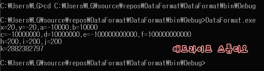 데이터 형식에 대한 개념을 확실하게 하기위해 간단한 콘솔 프로그램을