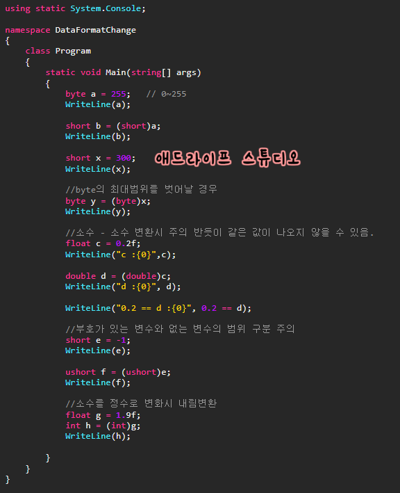 C# 프로그램 시작하기 - 데이터 형식 익히기 #3-2 <- 링크