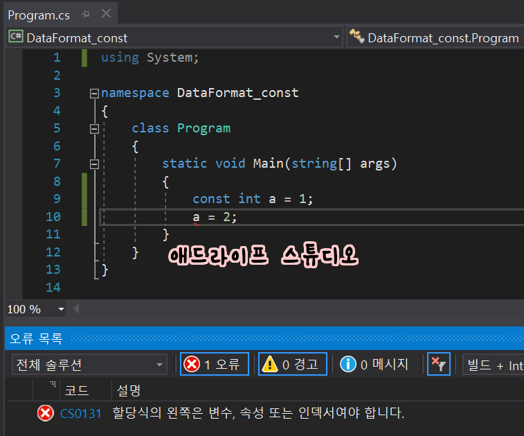 컴파일러가 잔소리를 합니다. 상수를 왜!! 바꾸냐!!