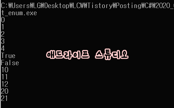 프로그램에는 enum(열거형식)의 특징을 잘 설명해 놓았습니다.
